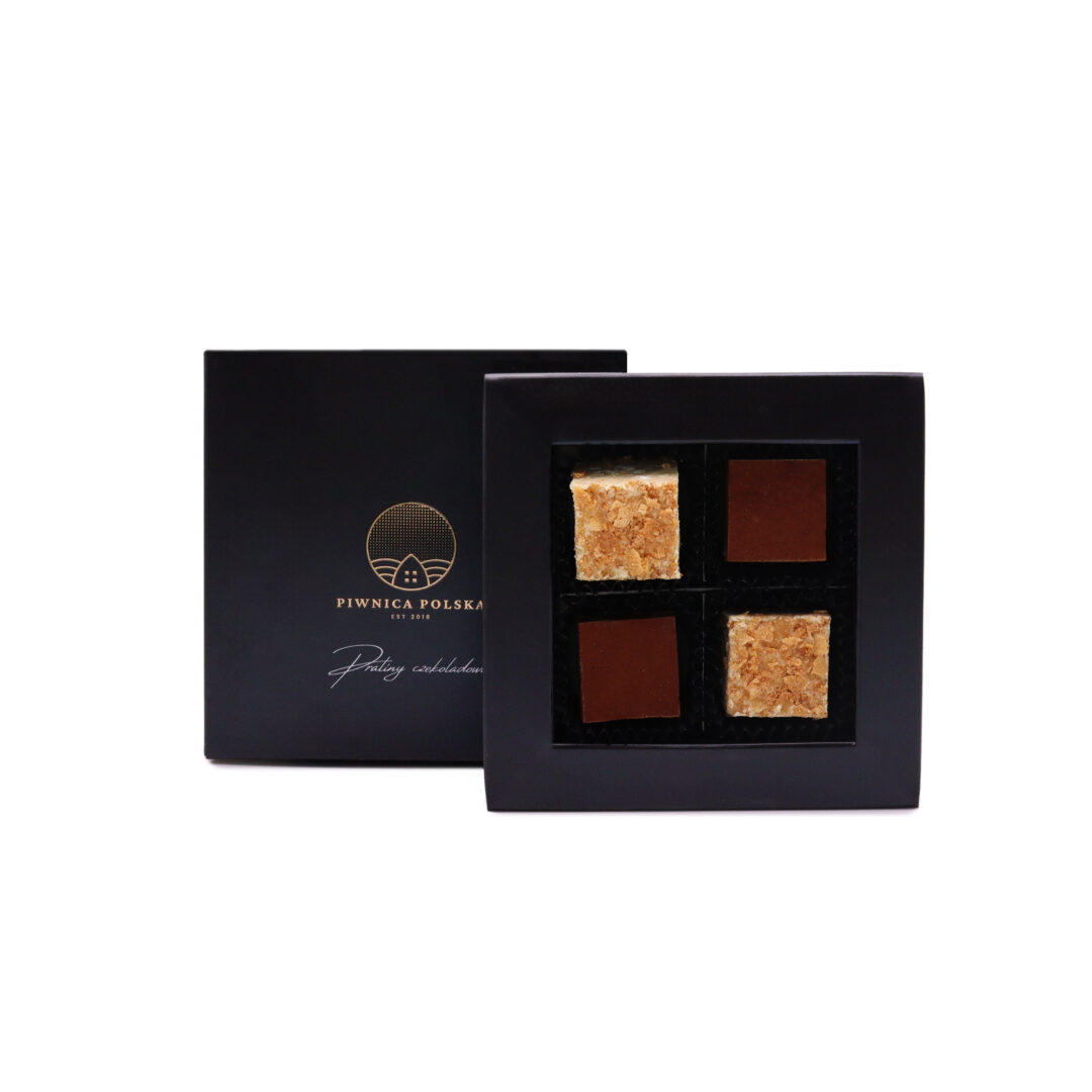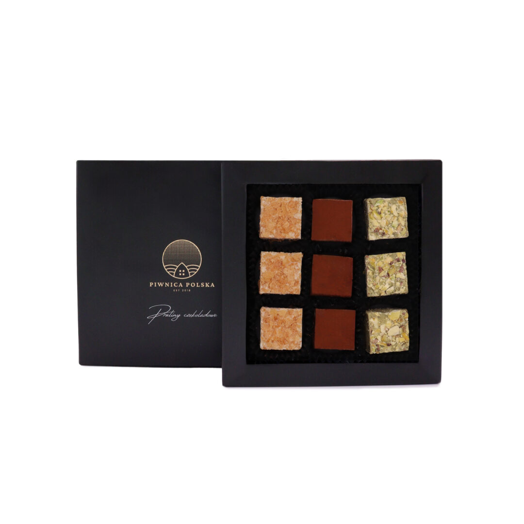 Skład: Nugat migdałowo-malinowy z orzechami nerkowca, Nugat orzechowy z kawałkami prażonych orzechów laskowych i chrupiącym francuskim naleśnikiem