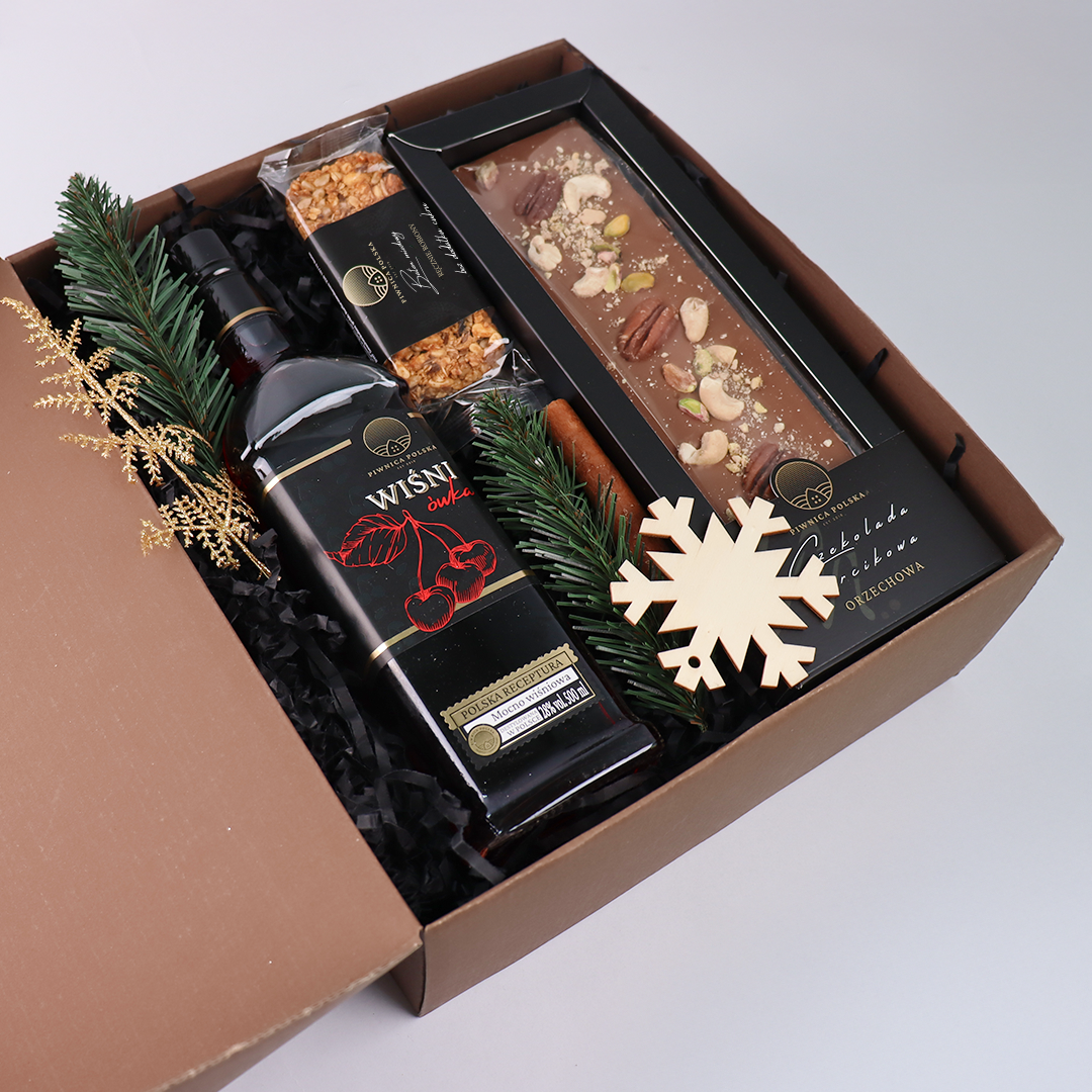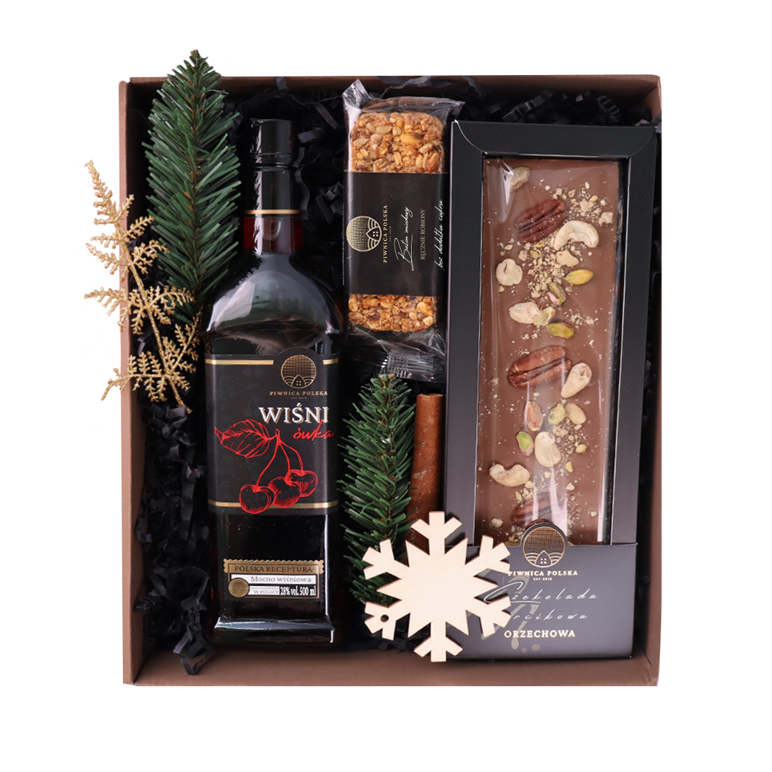 Świąteczny z Wiśniówką to propozycja kompaktowa, efektowna i gotowa do wręczenia, łącząca smak, tradycję i świąteczną symbolikę.